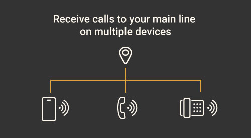 - การโทรไปยังหมายเลขโทรศัพท์ที่ลงทะเบียน เช่น มีสายมายังเบอร์ธุรกิจหลักของคุณ ทุกสายจะถูกโอนไปยังอุปกรณ์อื่นโดยอัตโนมัติ (เช่น ไปยังโทรศัพท์บ้าน โทรศัพท์มือถือ ฯลฯ) ตามลำดับที่คุณวางแผนไว้